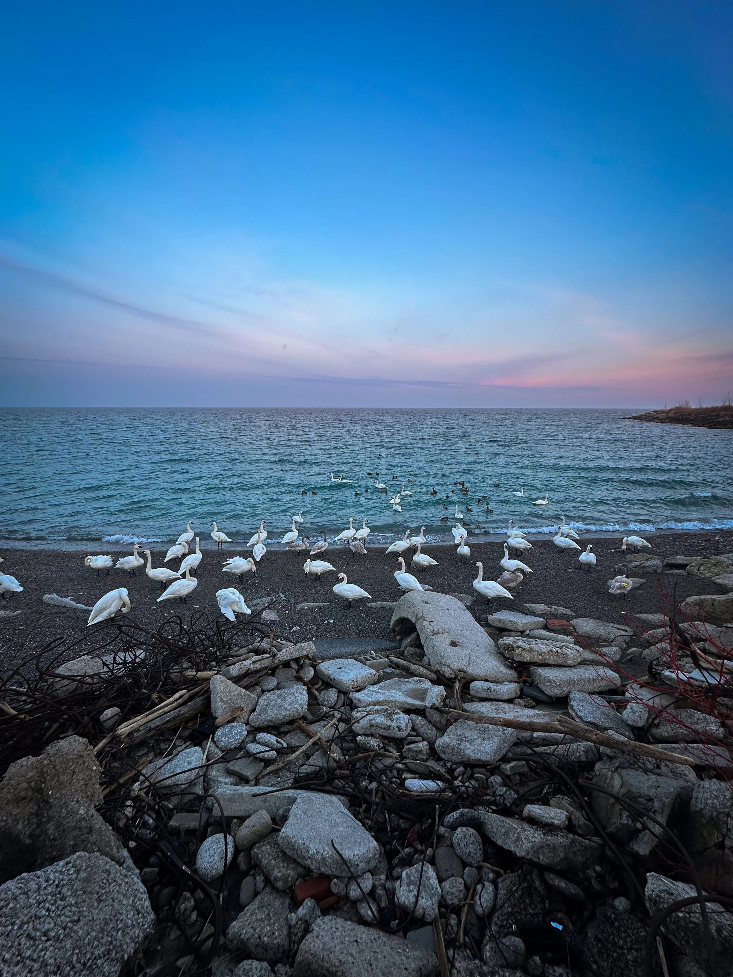 I stopped in at a cove reliable for trumpeter swans where it seemed that they’d also hunkered in for the evening - I’d never seen so many in that one place on previous trips. I caught some footage of them as well for the long-gestating, utterly unwieldy story of trumpeter swans in Canada that has been back-burnering for a couple years now.